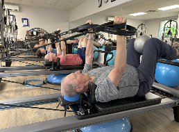 Our reformer group classes are designed to accomodate up to four individuals. Spring selections and modifications will be given to accomodate all levels, ages and abilities.  Semi-private and private classes are also available and may include the use of the chair, spine corrector, and Pilates Stick.